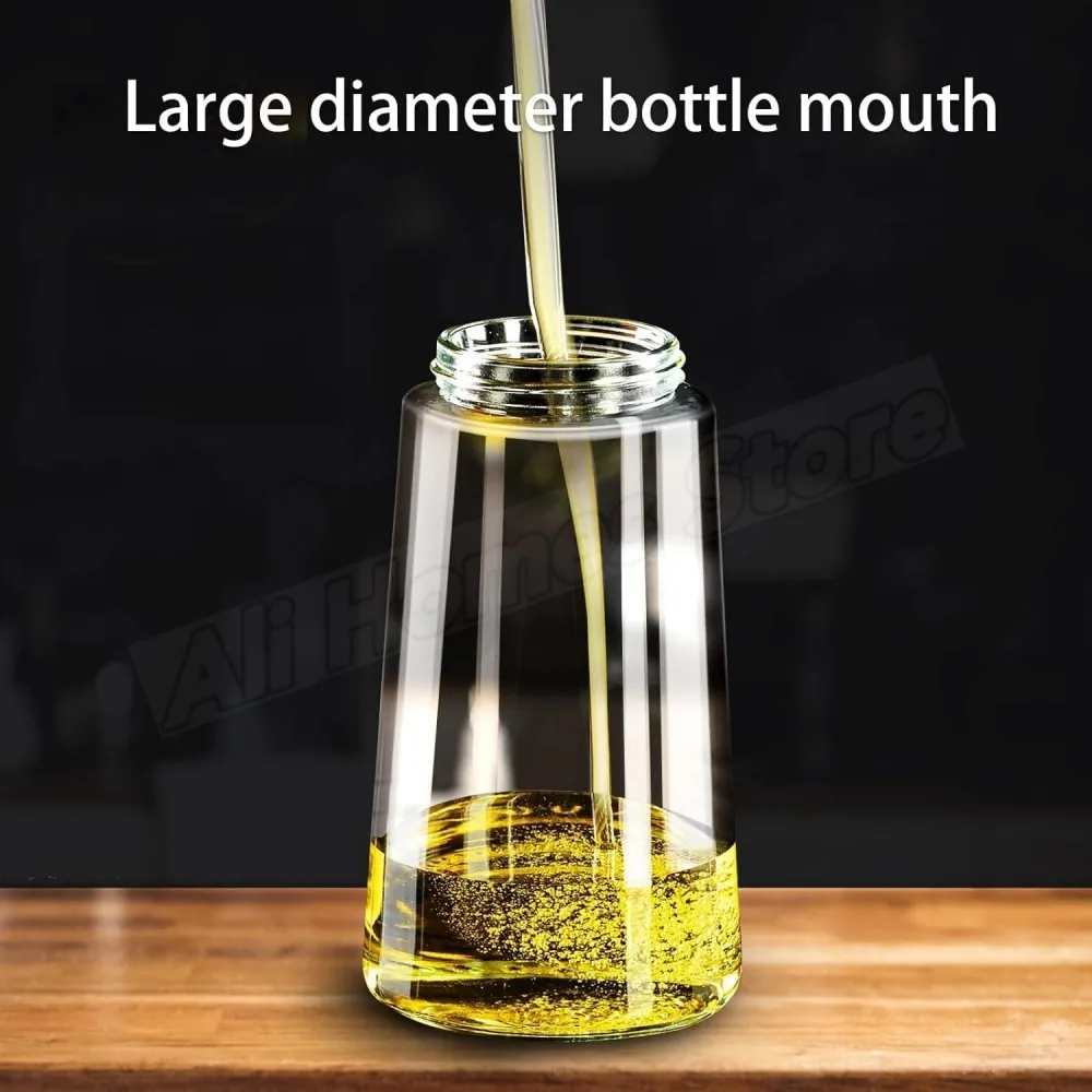 MATERIAL DE ALTO BOROSILICADO: pulverizador de óleo para cozinhar O alto teor de borosilicato usado tem alta resistência ao calor, alta dureza e pode suportar mudanças de temperatura de -20?-150? sem estourar, a dureza atinge 6,5HM, o frasco dispensador de azeite tem boa tenacidade e resistência ao impacto e não é fácil de quebrar