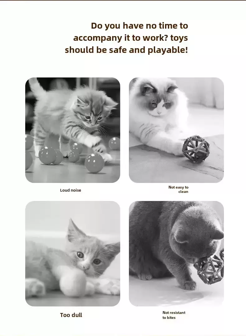 ?Design irresistível para gatos?Com caudas intercambiáveis e padrões erráticos que imitam presas, esta bola de brinquedo para gatos em movimento automático cativa gatos de interior, proporcionando brincadeiras estimulantes que satisfaz seus instintos de caça.