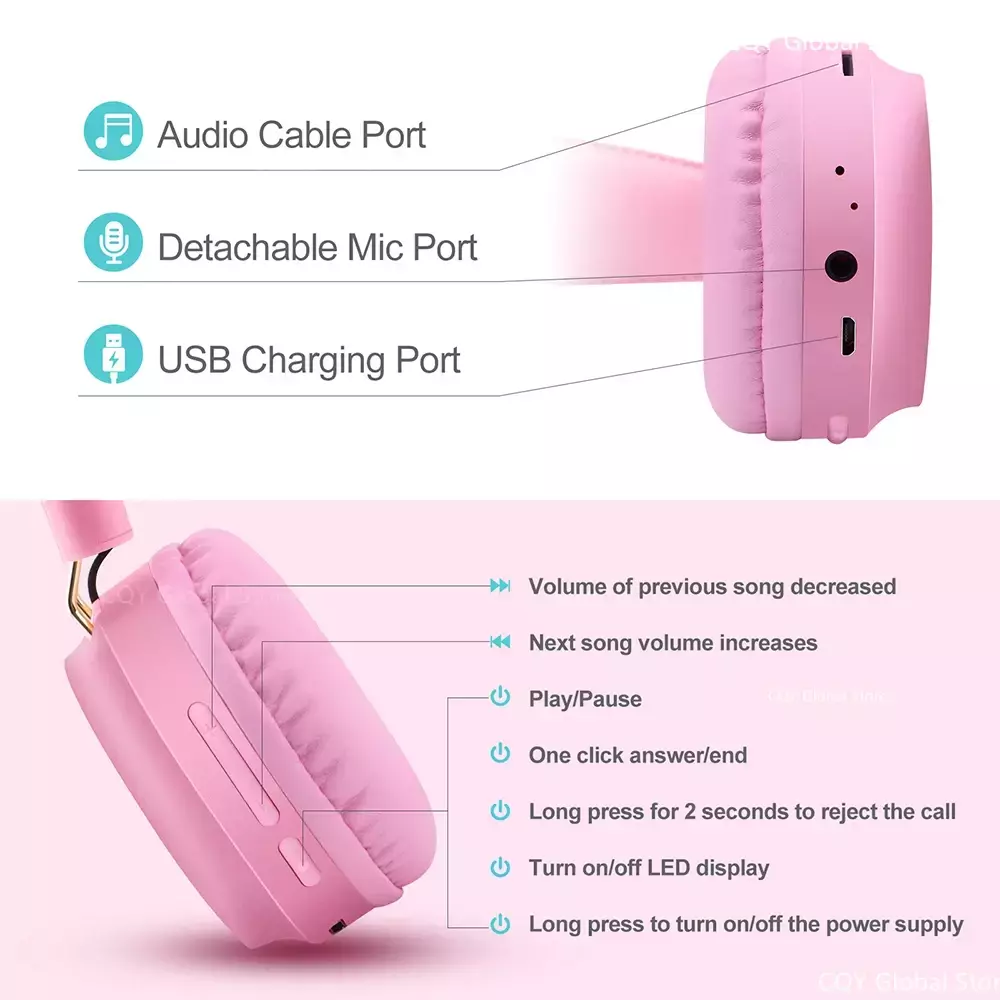 O fone de ouvido sem fio está equipado com alto-falantes estéreo de alta qualidade, permitindo que as crianças desfrutem de som surround 3D.Fornece som nítido ao tocar música e falar, adequado para escolas, famílias, aviões, viagens de carro e festas.
